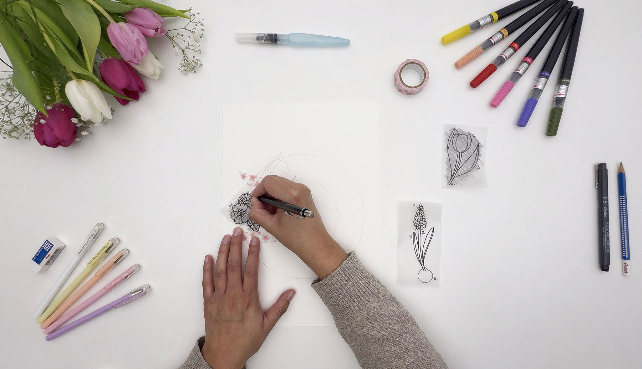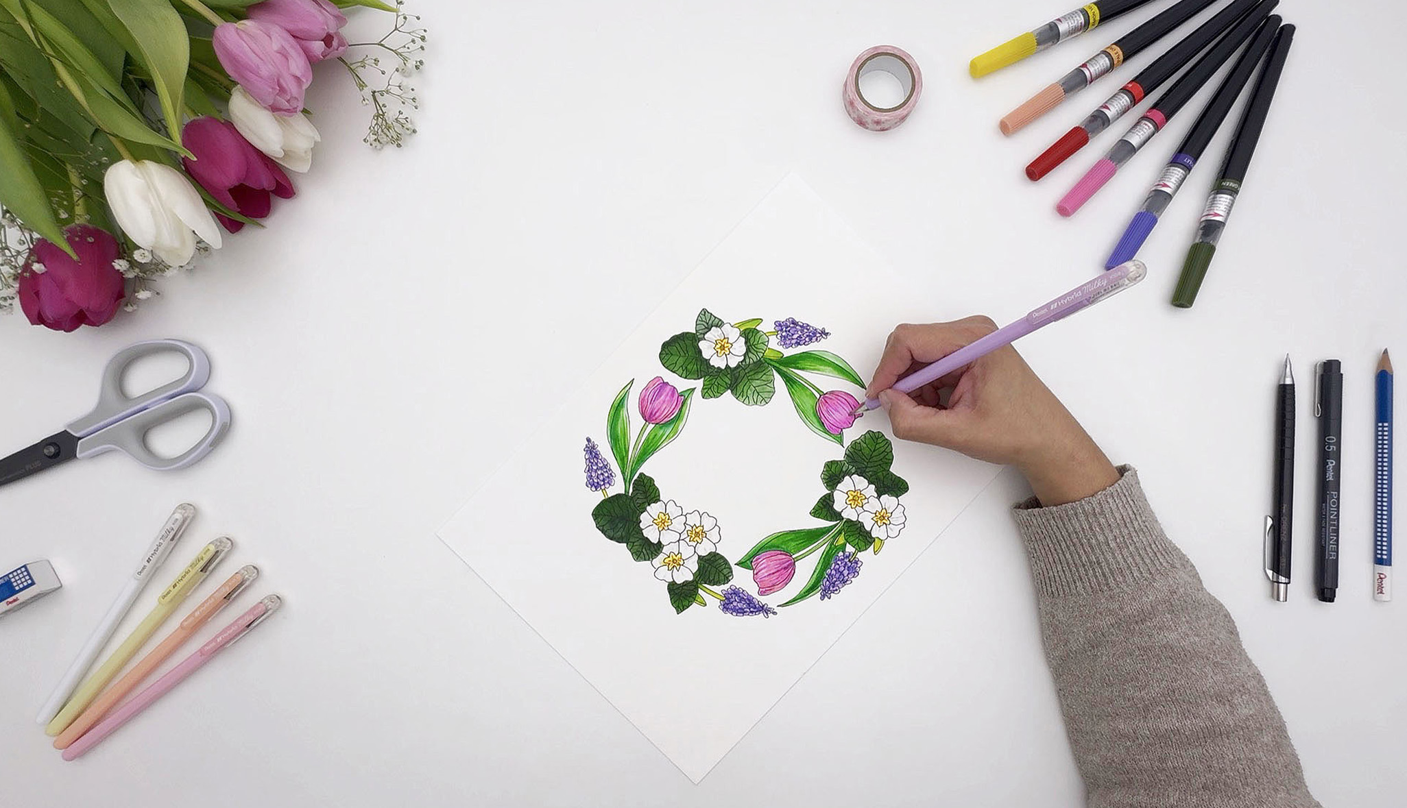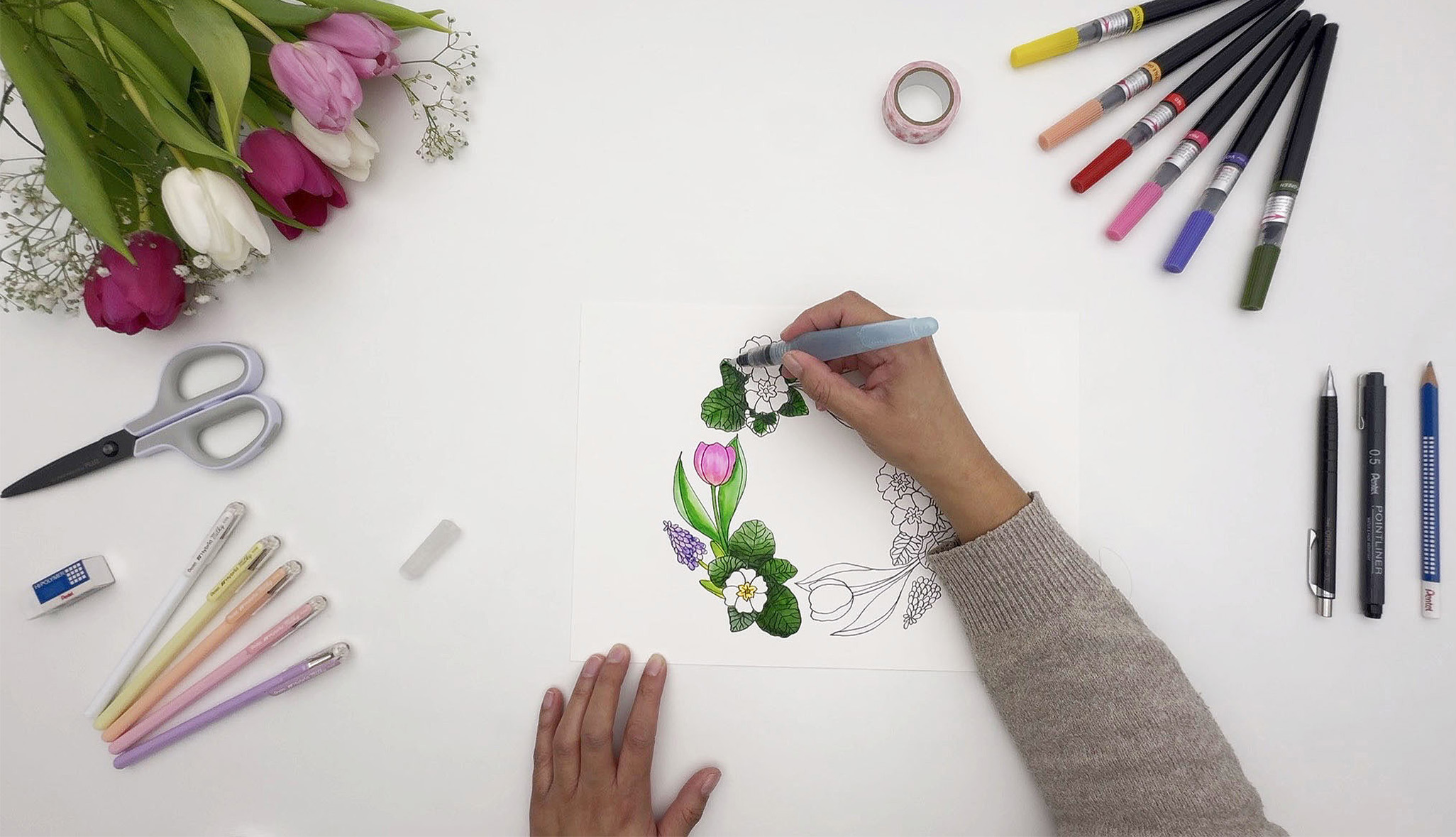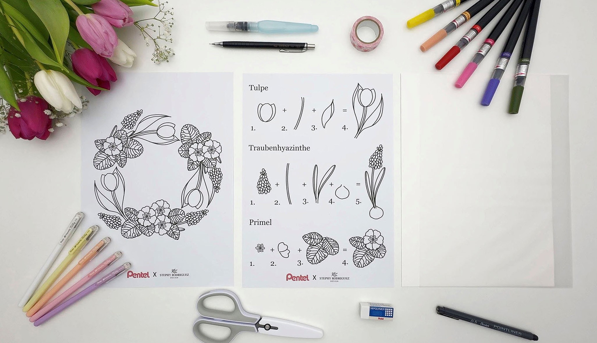 Der Frühling ist da – die Tage werden länger, die Natur erwacht und überall sprießen frische Farben und neue Ideen. Genau die richtige Zeit, um selbst kreativ zu werden! Die Künstlerin @stephyrodriguez_design hat einen wunderschönen Frühlingskranz gestaltet, den du ganz einfach Schritt für Schritt nachzeichnen kannst. Mit einer anschaulichen Anleitung zum Zeichnen von drei verschiedenen Frühlingsblumen sowie einer passenden Frühlingskranz-Vorlage gelingt dir dein eigenes frühlingshaftes Kunstwerk im Handumdrehen. Viel Spaß!